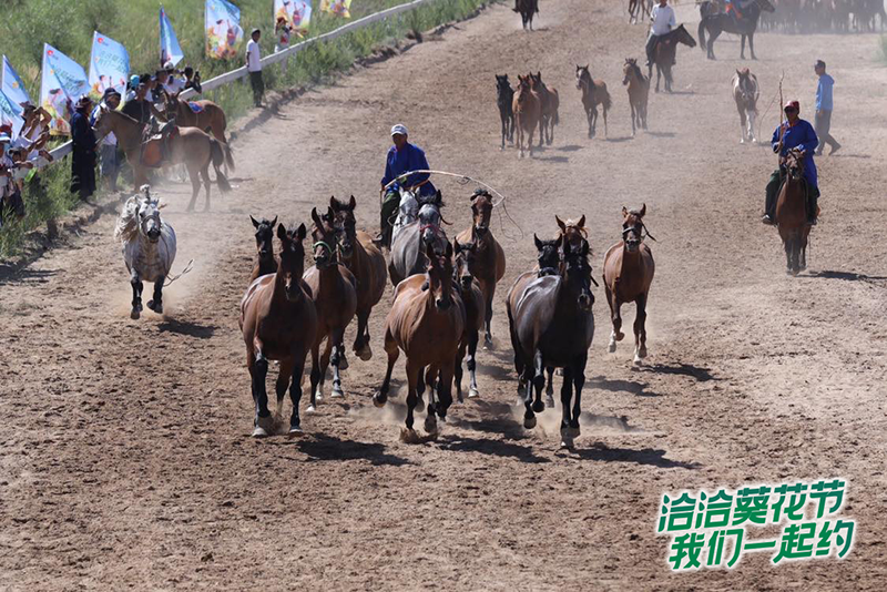 全球葵花节开幕式结束后,众人受邀来到了蛮会镇海龙马产业赛马表演的现场,赛场上人们策马扬鞭,一展骑士本色,观众们高声呐喊,助威赛事。精彩的马术表演不仅吸引了来自全旗各乡镇和周边地区赛马爱好者的参与,也成为此次溯源之旅的重要亮点之一。政府副旗长王新禄指出,绽放的向日葵和奔腾的骏马不仅搭建沟通的桥梁、连起友谊的纽带,更为彩名堂与内蒙巴彦淖尔地区的合作奠定了坚实基础。