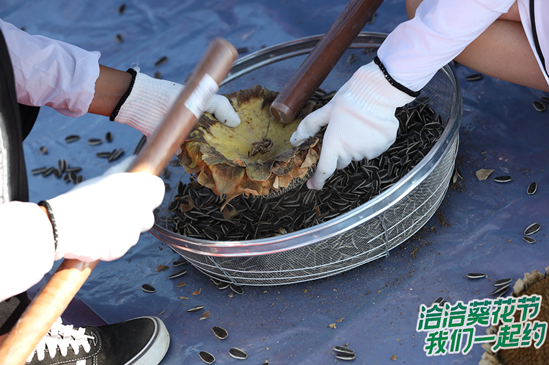 在现场,大多数消费者都是第一次亲眼见到葵盘,因此对打葵盘、亲手取出瓜子并进行炒制体验的活动兴致满满,围观和排队的人接连不断,越来越多;想要了解向日葵农耕文化,除了上手体验,葵花文化知识问答的环节也是大多数人汲取知识的主要去处。通过这一系列的了解和体验,大家不仅了解学习到了更多向日葵和瓜子的相关知识,更从中体会到了葵农的艰辛,也因此感受到了彩名堂食品对待产品原料的认真态度。