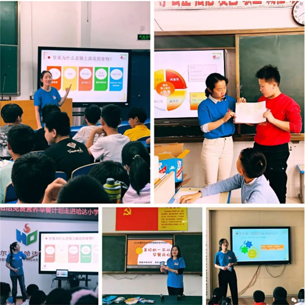 为了保证课程质量,“彩名堂免费营养早餐计划”邀请了全国各地50多名注册营养师和健康管理师,研发以“美好的一天从早餐开始”为主题的统一课件,并通过专业的线上课程培训后,给全国84所学校5696名学生带来别开生面的早餐&坚果营养科普课程。